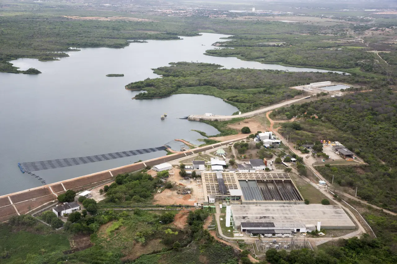 O bombeamento é feito por meio de um canal a céu aberto que liga os dois açudes.