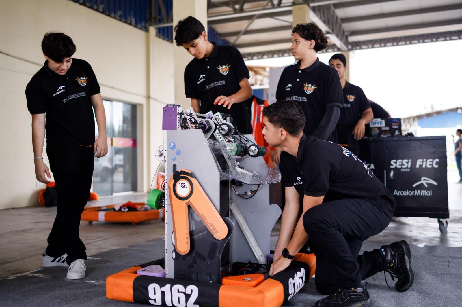 A equipe cearense All Might e seu robô -- que ganharam Festival do Sesi em março -- estão entre as 15 melhores equipes de robótica do Brasil