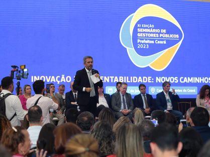 Aberto na manhã desta terça-feira, 6, no Centro de Eventos com a presença do governador Elmano de Freitas; da ministra de Gestão e Inovação, Ester Dweck;, do superintendente do Sistema Verdes Mares, Rui do Ceará; do presidente da Fiec, Ricardo Cavalcante; do presidente da Assembleia Legislativa, Evandro Leitão; do prefeito de Fortaleza, José Sarto; de 173 dos 184 prefeitos municipais do estado e de outras duas mil pessoas, o Seminário de Gestores Públicos – Prefeito Ceará 2023, que prosseguirá por todo o dia de amanhã, conheceu as linhas de crédito que dois dos mais importantes bancos de fomento do país, a Caixa e o BNB, dispõem para financiar empreendimentos públicos e privados na geografia cearense.