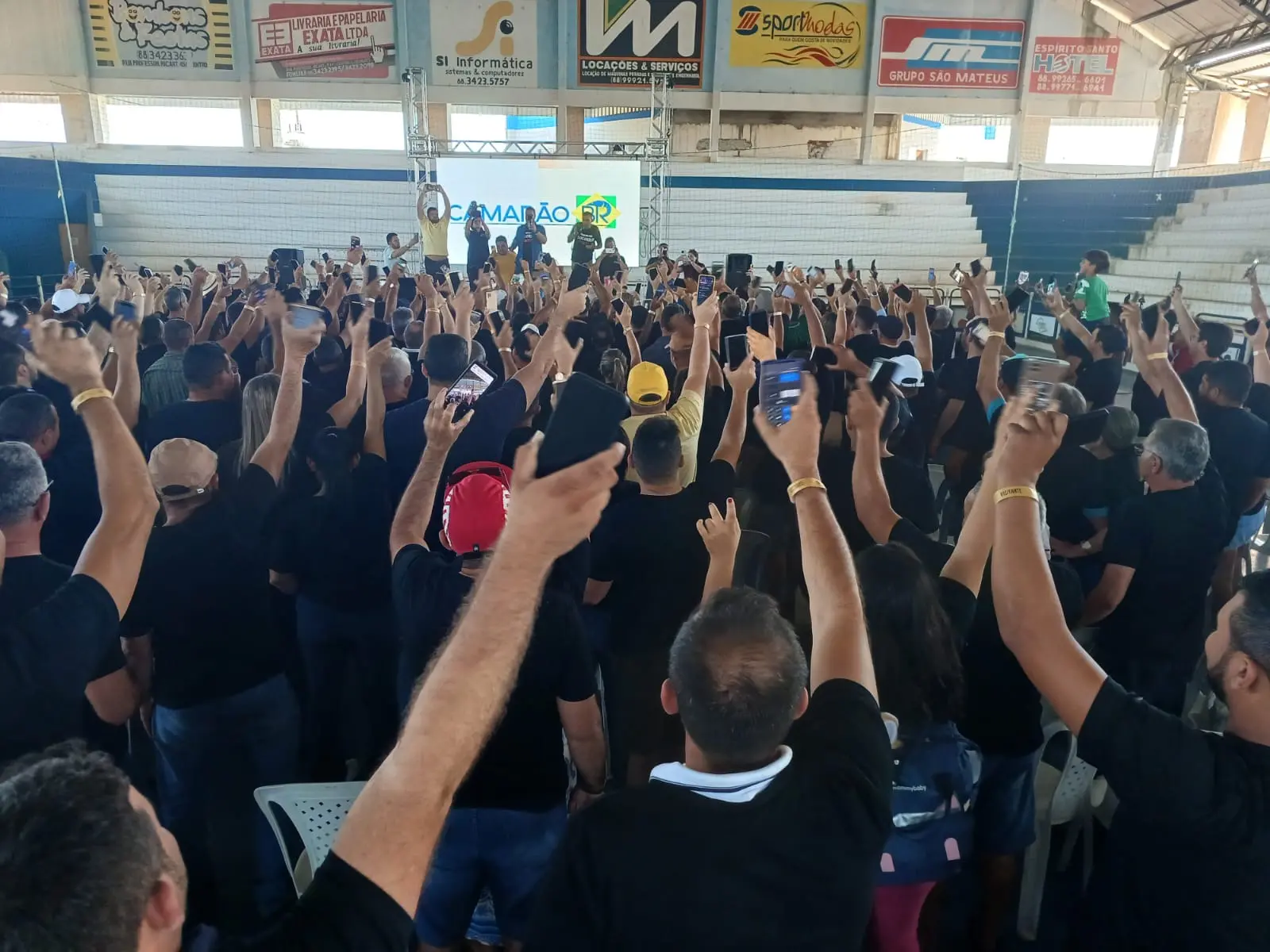 A manifestação dos carcinicultores jaguaribanos, realizada no Ginásio Coberto da cidade de Limoeiro do Norte, foi encerrada com todos gritando, literalmente: “Camarão importado, aqui não!”