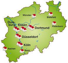 Integram a geografia da Renânia do Norte-Westfalia as cidades de Colônia, Dusseldorf, Essen e Dortmund.