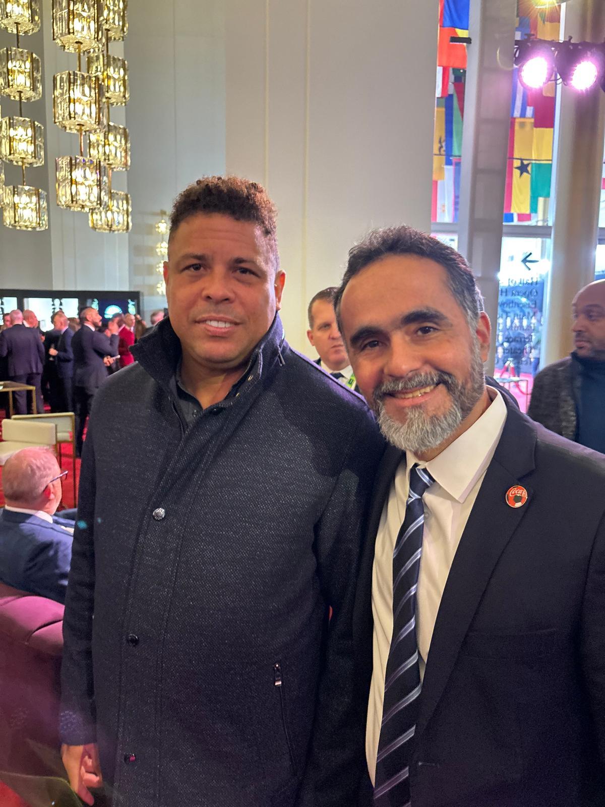 Hoje, sexta-feira, 5, em Washington, momentos antes do evento, Rodrigo Nogueira encontrou-se com Ronaldo Fenômeno, no Kennedy Center, local do sorteio dos jogos da Copa.