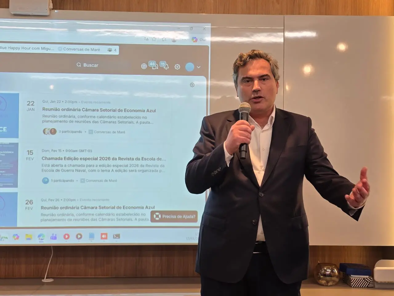 No fim de sua fala, Miguel Marques, para acentuar a importância da economia azul na vida das pessoas, lembrou que, há muito tempo, em Viana do Castelo, em Portugal, as autoridades municipais e a população deram-se as mãos e decidiram que cada habitante do lugar tem de aprender a nadar, a ser um surfista e, também, a remar.