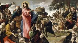Naquele tempo, Jesus foi para as margens do mar da Galiléia, subiu a montanha, e sentou-se. Numerosas multidões aproximaram-se dele, levando consigo coxos, aleijados, cegos, mudos, e muitos outros doentes. Então os colocaram aos pés de Jesus. E ele os curou. O povo ficou admirado, quando viu os mudos falando, os aleijados sendo curados, os coxos andando e os cegos enxergando. E glorificaram o Deus de Israel. Jesus chamou seus discípulos e disse: 'Tenho compaixão da multidão, porque já faz três dias que está comigo, e nada tem para comer. Não quero mandá-los embora com fome, para que não desmaiem pelo caminho.' Os discípulos disseram: 'Onde vamos buscar, neste deserto, tantos pães para saciar tão grande multidão?' Jesus perguntou: 'Quantos pães tendes?' Eles responderam: 'Sete, e alguns peixinhos'. E Jesus mandou que a multidão se sentasse pelo chão. Depois pegou os sete pães e os peixes, deu graças, partiu-os, e os dava aos discípulos, e os discípulos, às multidões. Todos comeram, e ficaram satisfeitos. e encheram sete cestos com os pedaços que sobraram.