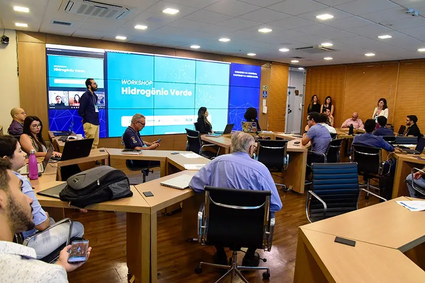 Informação procedente da Federação das Indústrias do Ceará (Fiec) revela: executivos do Governo do Estado, do Complexo Industrial e Portuário do Pecém (CIPP), da Universidade Federal do Ceará (UFC) e da Fiec reuniram-se na sala de inteligência do Observatório da Indústria, para consolidar textualmente o roadmap do Hub de Hidrogênio Verde do Ceará.