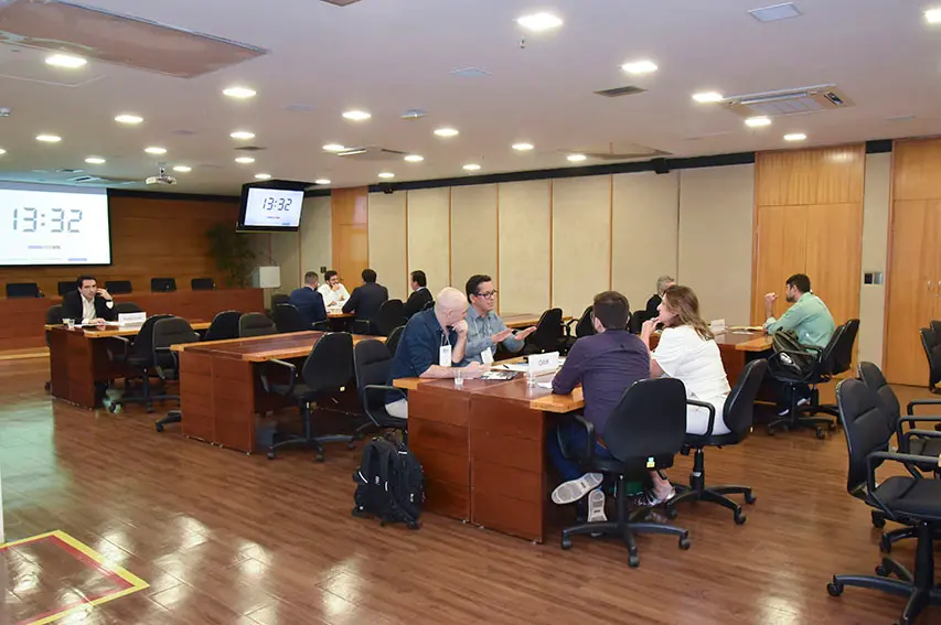 A expectativa da organização do Fiec Summit 2022 é de que, até o encerramento do evento, previsto para a noite desta quinta-feira, sejam realizadas 70 reuniões das seis empresas âncoras com as empresas inscritas para a Rodada de Negócios. Essas reuniões acontecem em espaço distinto, afastado dos dois auditórios e do saguão do piso térreo da Casa da Indústria, sede da Fiec.