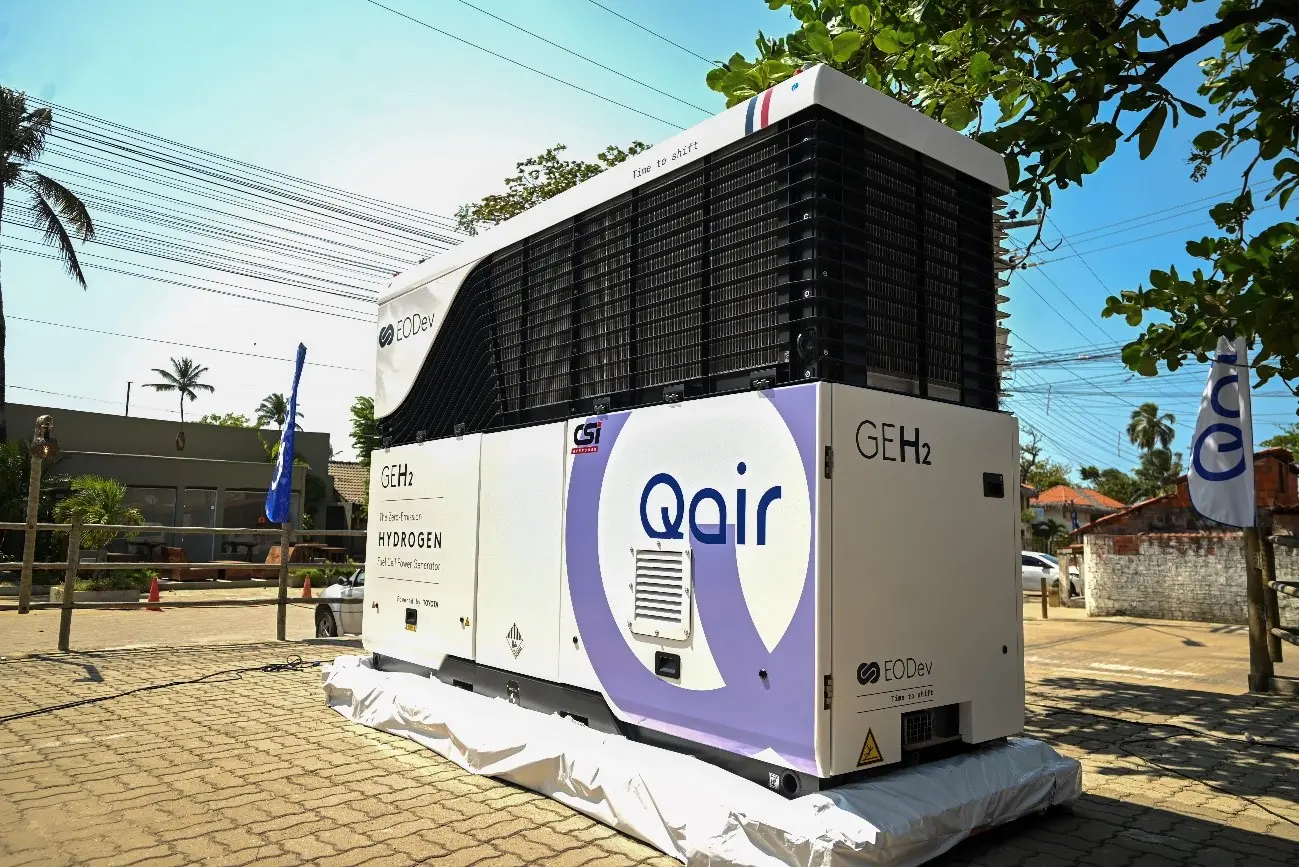 O gerador exposto no Fiec Summit é resultado de uma colaboração entre Qair, EODEV, Air Liquid e CSI Gerpower, que tornou possível a introdução de geradores de Hidrogênio Verde no território brasileiro.