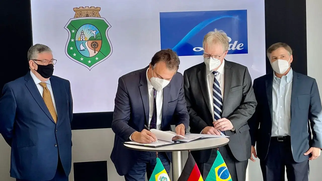 Ontem, em Munique, na Alemanha, o governador Camilo Santana e seu fiel escudeiro Maia Júnior, secretário do Desenvolvimento e Trabalho (Sedet), celebraram mais um Memorando de Entendimento com outra multinacional interessada em produzir Hidrogênio no Ceará – a Linde, maior empresa mundial na produção de gases industriais e engenharia, controladora da White Martins, que tem fábrica no Ceará, exatamente no Complexo do Pecém, em cuja geografia será instalado o Hub do H2V.