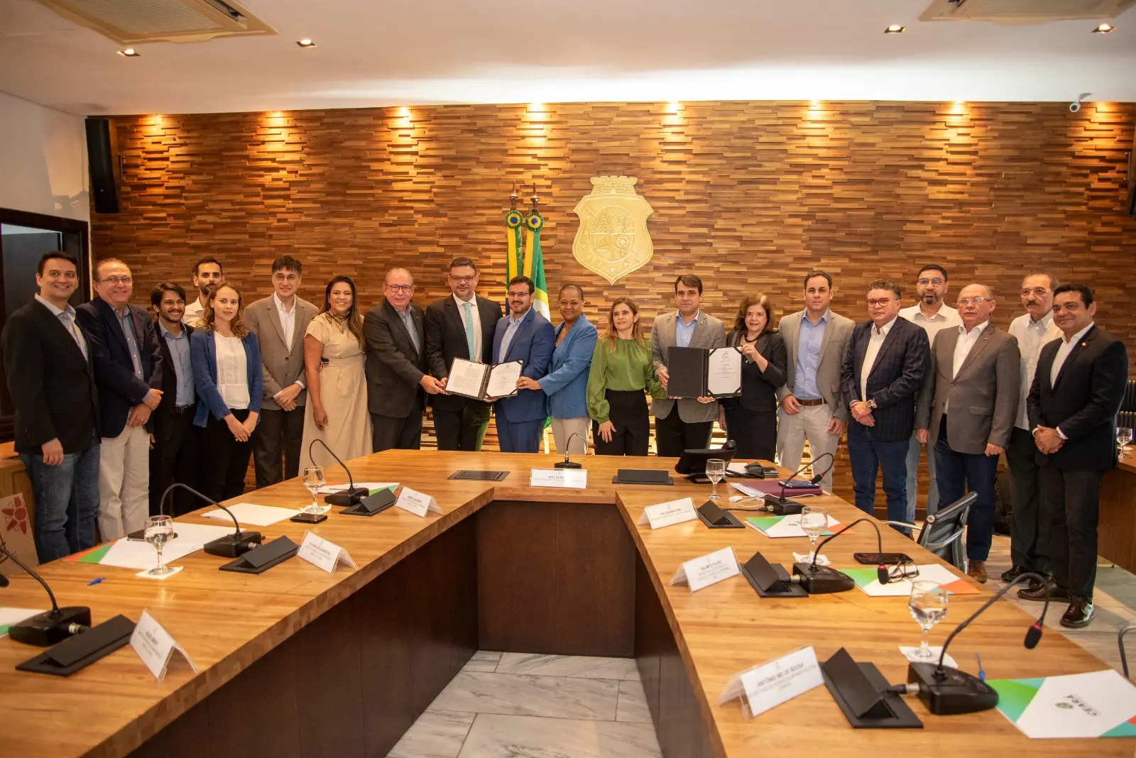 A cerimônia de assinatura realizou-se no Palácio da Abolição e foi presidida pelo secretário-hefe da Casa Civil, Max Quitino, representando o governador Elmano de Freitas, que está em Brasília.