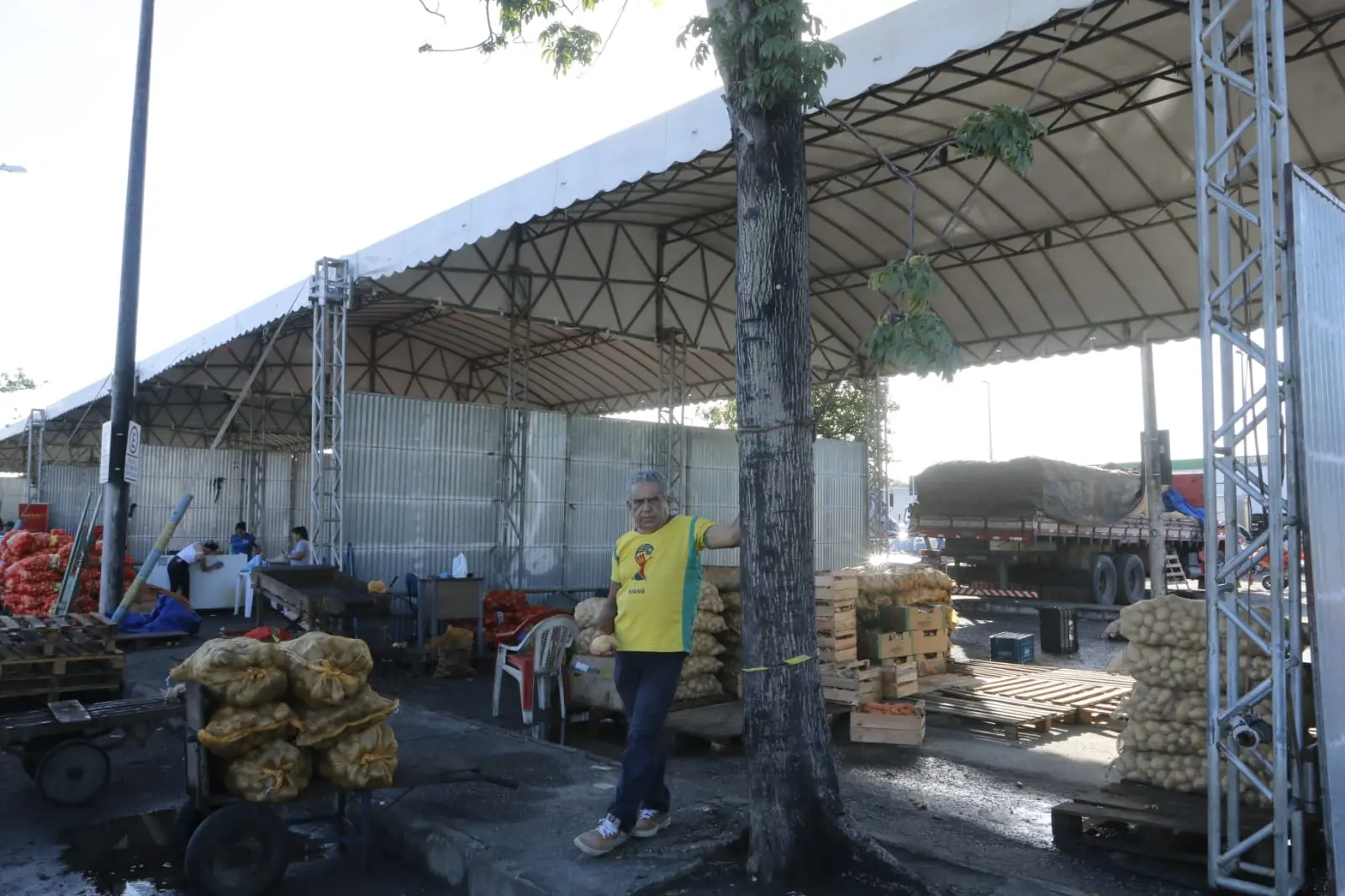 Permissionários que tiveram boxes destruídos pelo fogo já ocupam tenda provisória e não lhes será cobrada qualquer aluguel ou taxa de condomínio enquanto durar a recuperação do galpão sinistrado
