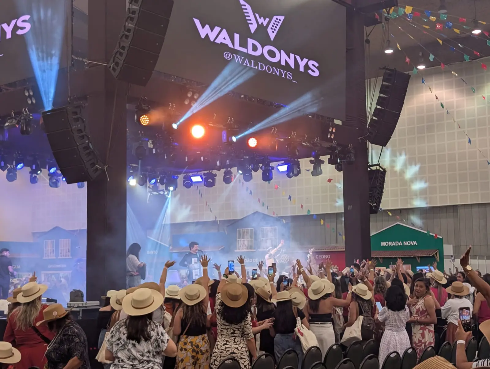 O que poderia causar desconforto às que não estavam sentadas serviu-lhes de combustível para, durante uma hora, ouvir e aplaudir um dos seus ídolos – Waldonys, sanfoneiro, cantor, poeta, aviador, piloto de acrobacias aéreas, paraquedista e membro honorário da Esquadrilha da Fumaça da FAB. Ele, sua sanfona e sua afinadíssima banda deram o brilho que completou a festa.