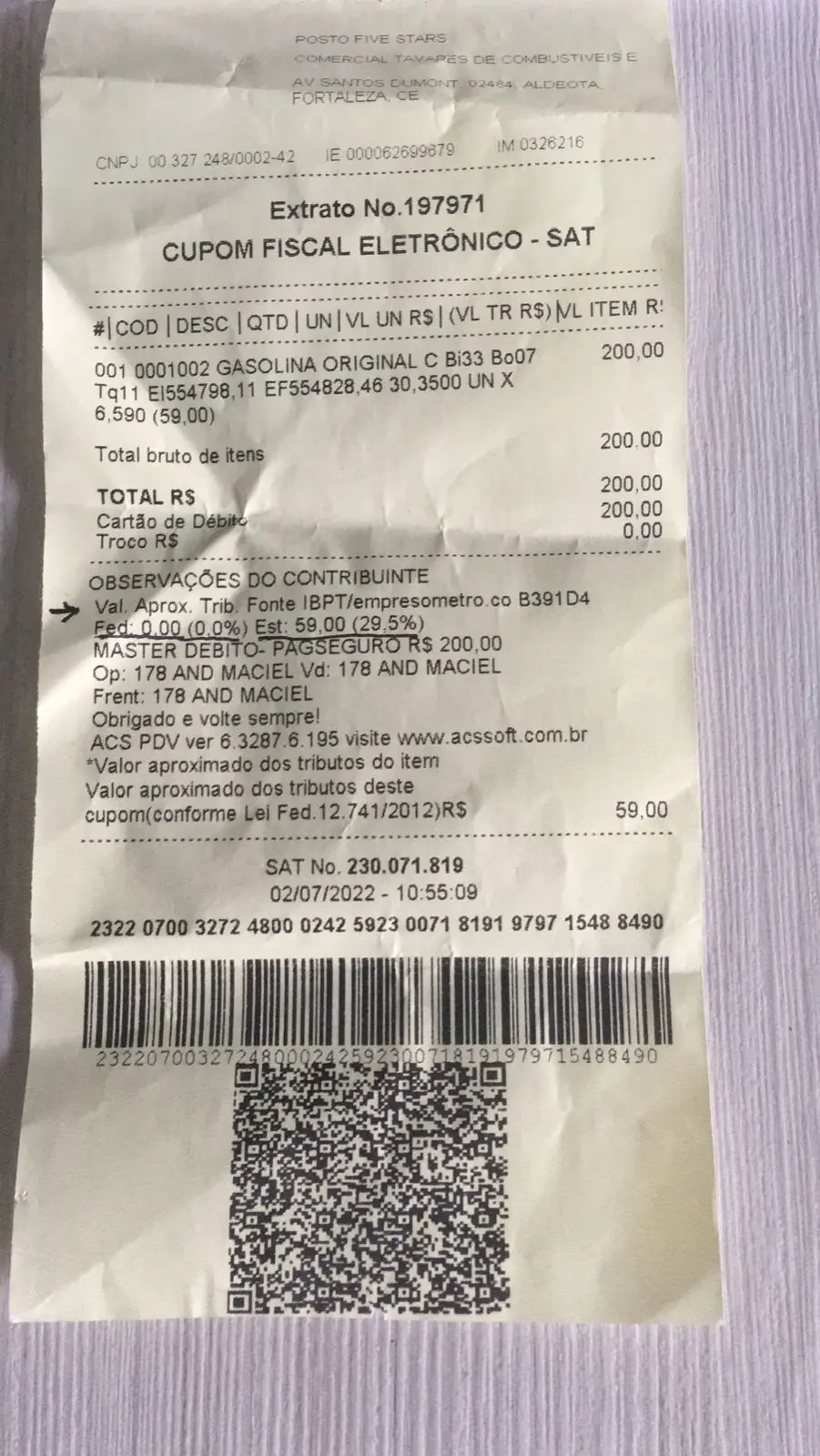 Ontem, sábado, 3, um profissional da comunicação adicionou ao tanque de gasolina do seu Fiesta 1.0, modelo 2013, o equivalente a R$ 200 em gasolina comum, no Posto Five Stars, na Avenida Santos Dumont, 2884, bem na esquina com a rua Tibúrcio Cavalcante, onde há três anos o Metrofor constrói uma estação de sua futura Linha Leste.