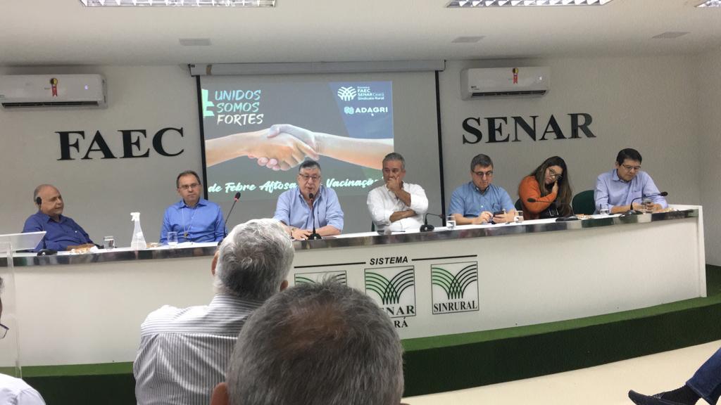 Presente à reunião, realizada na sede da Faec, no bairro do Jardim América, a presidente da Agência de Defesa da Agropecuária (Adagri), Vilma Freira, declarou-se “muito feliz” com a decisão da Federação da Agricultura e Pecuária de iniciar, naquele momento, uma campanha para que o Ceará se torne zona livre da febre aftosa sem vacinação.