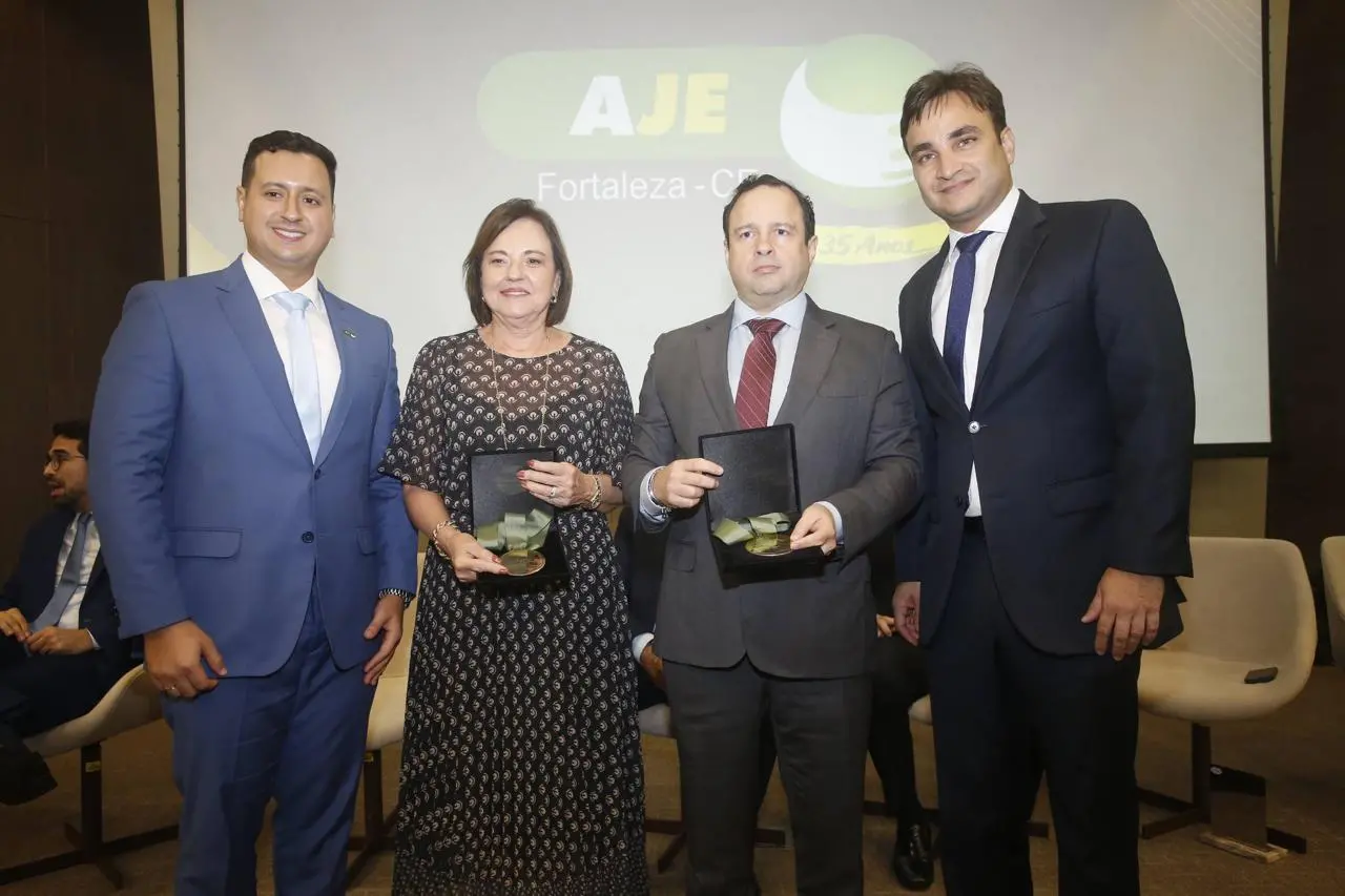 Foi uma noite de alegria e emoção, do primeiro ao sexto e último discurso, a que viveram ontem os mais de 400 convidados para a posse do novo coordenador-geral da Associação dos Jovens Empresários (AJE Fortaleza), Lucas Melo, que substituiu David Macedo. No evento, a AJE entregou o troféu de Jovem Mentalidade Empreendedora a Ana Maria Studart, vice-presidente da Fundação Beto Studart de Incentivo ao Talento, e a Igor Queiroz Barroso, acionista e conselheiro do Grupo Edson Queiroz.