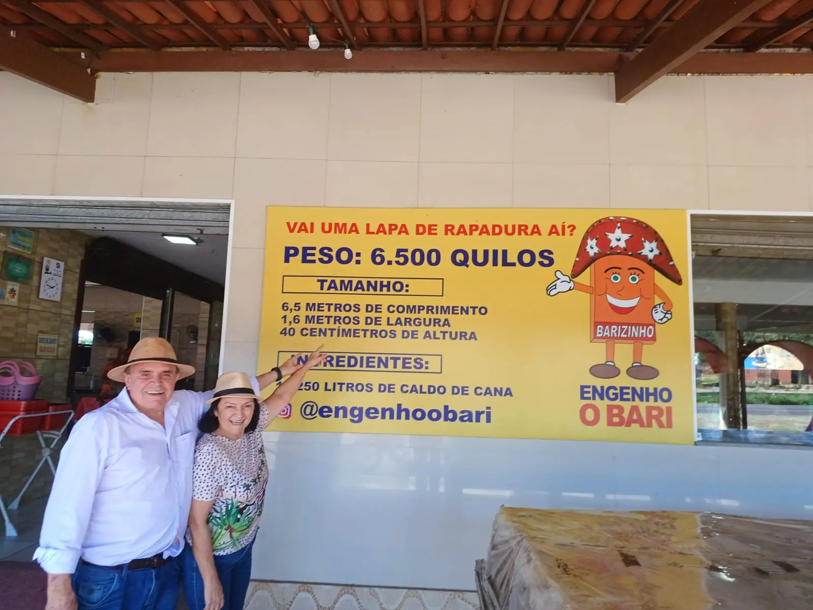 Mas o que chama a atenção de quem visita o Engenho O Bari é uma gigantesca rapadura, que, protegida por uma bem cuidada capa de plástico transparente, está em permanente exposição, surpreendendo os que duvidavam de sua existência.