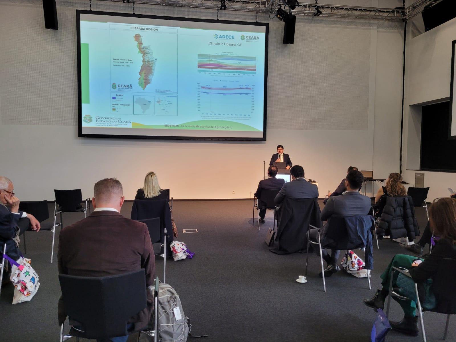 Ele foi a Berlim para apresentar as potencialidades da economia do Ceará para executivos de empresas da Europa e de outros países – que estavam na Fruit Logistica, maior feira mundial da cadeia produtiva da hortifruticultura, que envolve desde grandes empresas de navegação marítima até pequenos produtores de alfaces e repolhos de 2 mil países dos cinco continentes.