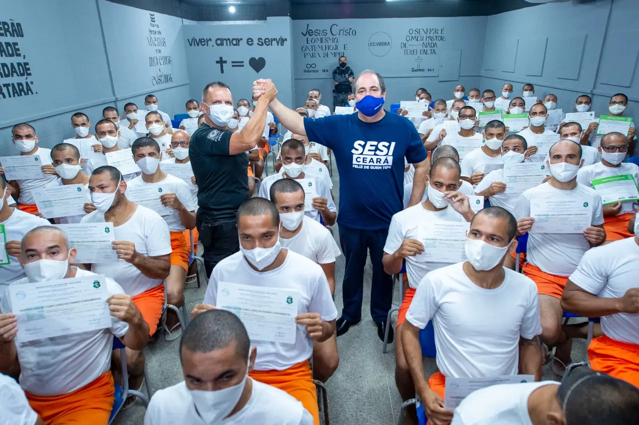 Mais 141 internos do Instituto Penal Paulo Sarasate concluíram cursos ministrados por professores do Sesi-CE, emocionando seu superintendente, Paulo André Holanda.