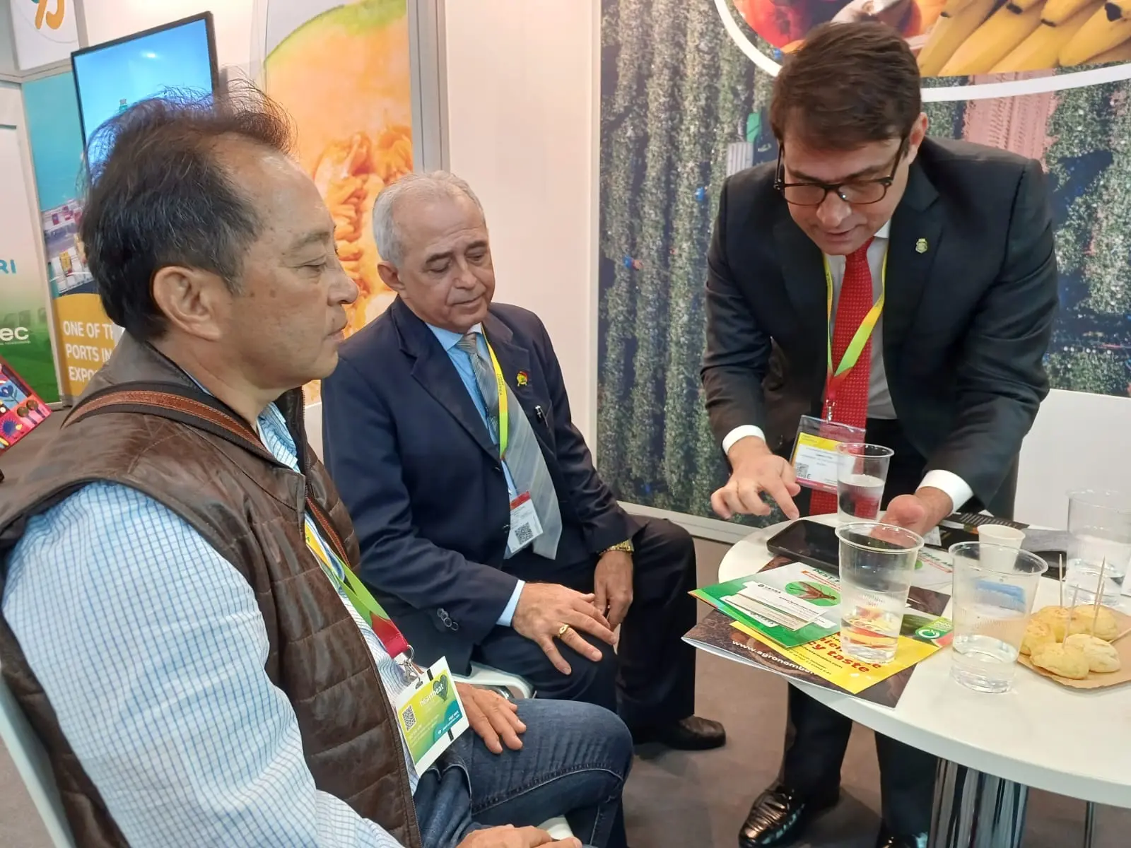 A segunda boa notícia é a seguinte: Edson Okuma e seu filho Felipe, donos da Okuma Citrus Agro Comercal, com fazendas de produção em Fernandópolis, no Noroeste de São Paulo, reuniu-se ontem, na Fruit Logistica, com o secretário Salmito Filho, mostrando interesse em investir na plantação de laranja, limão e tangerina no Ceará.