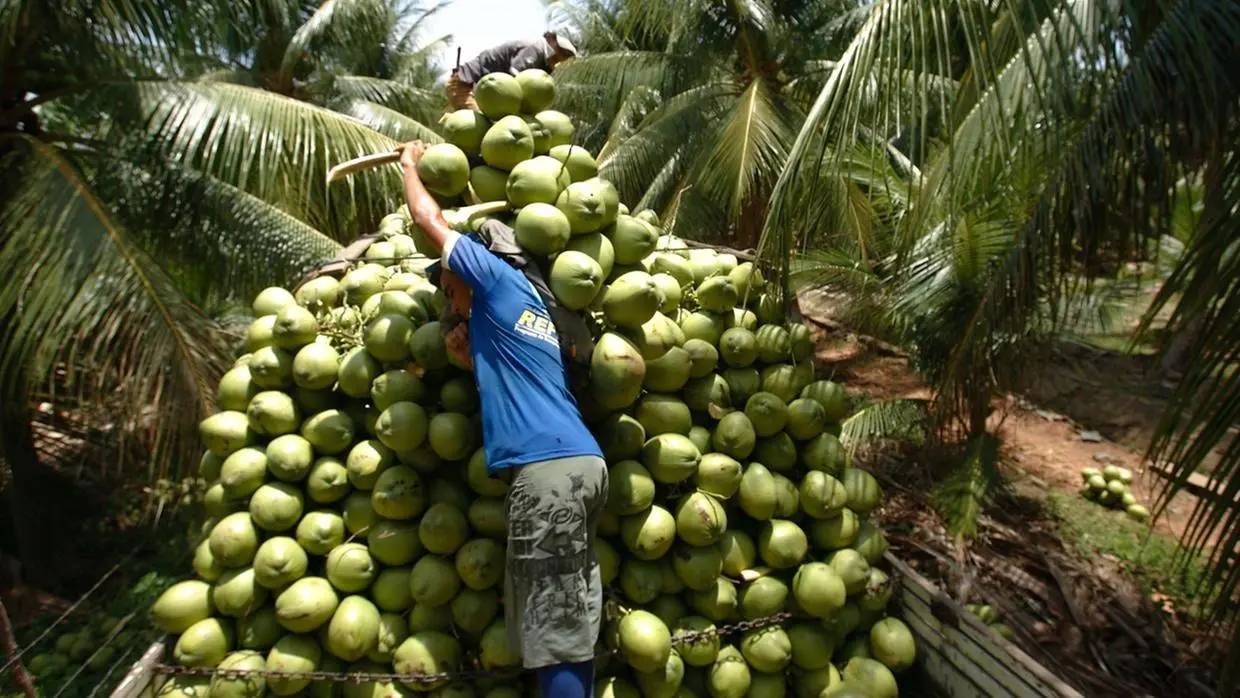 São cinco empresas cearenses que exportam água de coco para os EUA. Há o temor de desemprego no Litoral Norte do Ceará