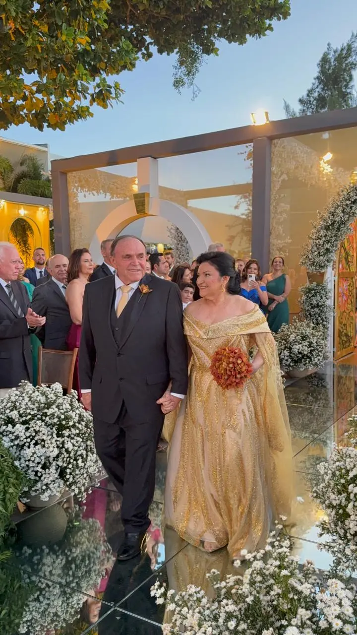 Meio século depois, sábado passado, 14, às 17h15, no La Maison, Cristiano e Luzia, sob os aplausos de 600 amigos, a maioria agropecuaristas e industriais, emocionaram-se com a cerimônia que seus filhos Christianny, Moacy e Gyscard elaboraram para essa celebração, cuja primeira parte aconteceu a céu aberto no terraço daquelas casa de eventos. O casal entrou de mãos dadas, antecedido pelos filhos e netos, ouvindo sua música preferida – "Love Theme from The Godfather" – cantada por Paulo José Benevides, com banda e coral, no original em inglês e na versão em português.