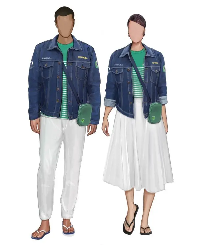 Os trajes olímpicos do Brasil foram confeccionados a partir de tecidos recicláveis com detalhes bordados à mão, técnicas provenientes de Natal e do semiárido do Rio Grande do Norte. Com motivos da fauna e flora brasileira, o traje de longe representa nossa riqueza cultural e trabalho autoral de tantos artistas deste país de escala continental - o que não é justificativa para um design tão recatado e sem qualquer molejo.