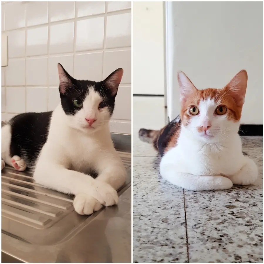 Deu um aperto no coração quando pensei em levar só um. Resultado: peguei os dois. Lá, eles tinham os nomes de Bolinha e Pirata. O macho era chamado de Pirata porque tem um olho atrofiado.