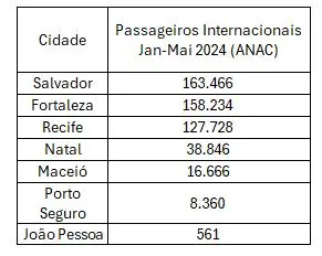 Nos 5 primeiros meses do ano, o Pinto Martins cresceu 89% em movimentação internacional: foram 158.234 em 2024, contra 83.535 em 2023.