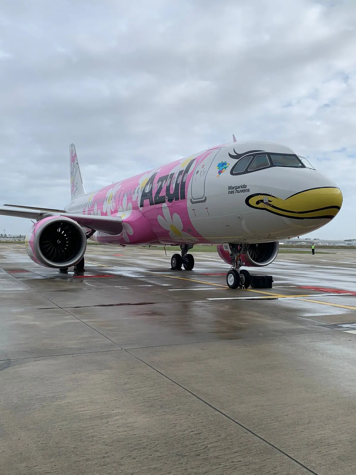 O avião intitulado “Margarida nas Nuvens” foi pintado nas dependências da Airbus, terá matrícula PR-YSK, é o 51º A320neo da Azul, do tipo Short Airfield Performance Performance (Sharp), e conseguirá decolar em pistas realmente curtas como a do Aeroporto Santos Dumont, no Rio de Janeiro, para cidades do Nordeste, como Recife.