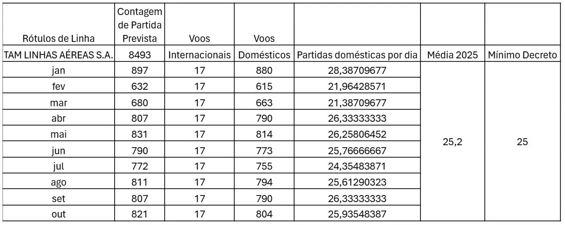 Como a quantidade mínima para fazer jus a alíquota é de 25 decolagens por mês, a companhia se vale de créditos para voar menos em fevereiro e março de 2025, quando voará média de 22 decolagens por dia.