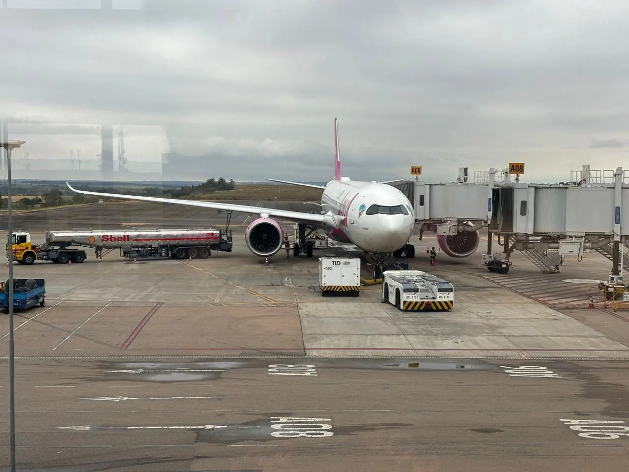 Aeronave de fuselagem larga. Que outra forma de voar em grande estilo que em um widebody, aeronave de corredor duplo? E o Airbus 330-900 é das aeronaves mais novas e modernas que voam no Brasil. Alia amplitude com motores silenciosos e muita estabilidade entre os ventos fortes que enfrentamos entre Campinas e Orlando: o avião pouco mexia.