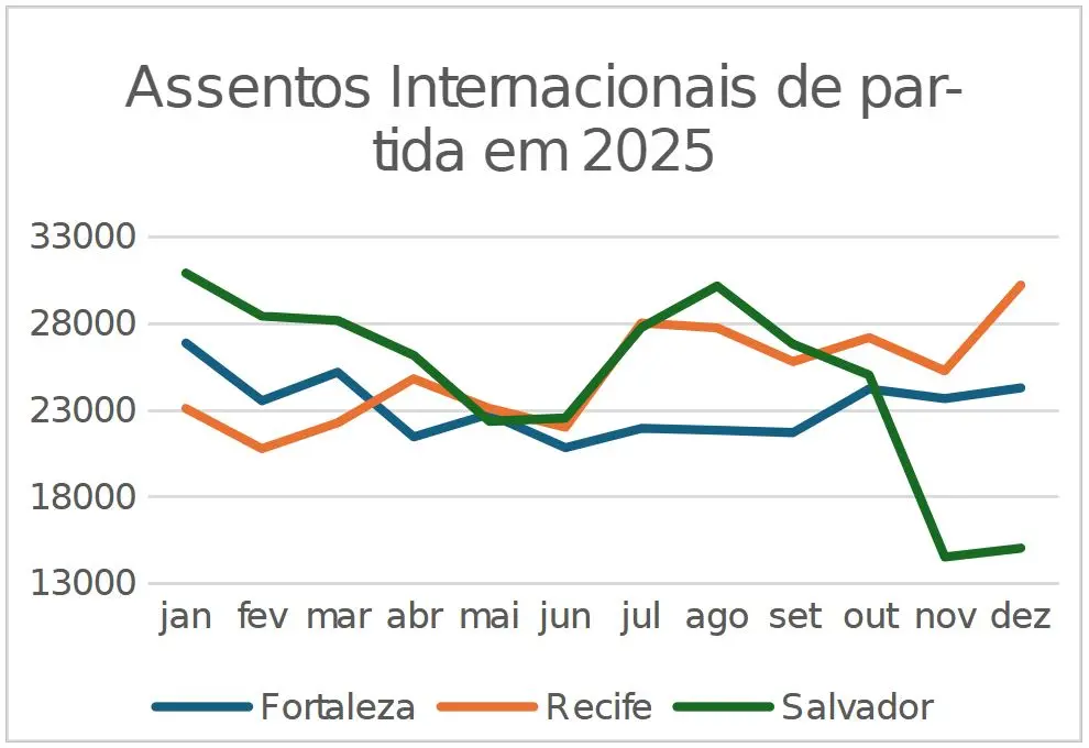 E Recife tem apresentado resultados próximos aos de Fortaleza: 33.019 passageiros internacionais.