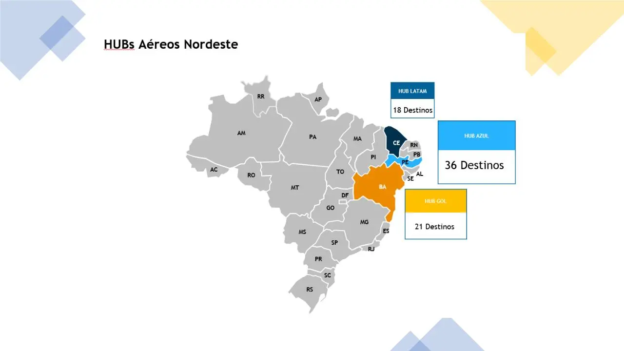 Em 2016, porém, a Azul Linhas Aéreas inovou na região ao formalizar a criação de um centro de conexões aéreas (hub) na cidade de Recife-PE. Um centro de conexões é um aeroporto com grande quantidade de voos, permitindo aos passageiros se conectarem a destinos variados.