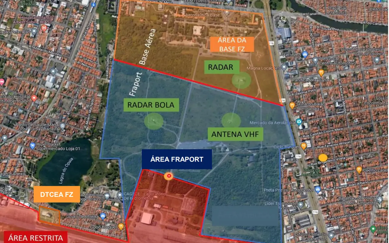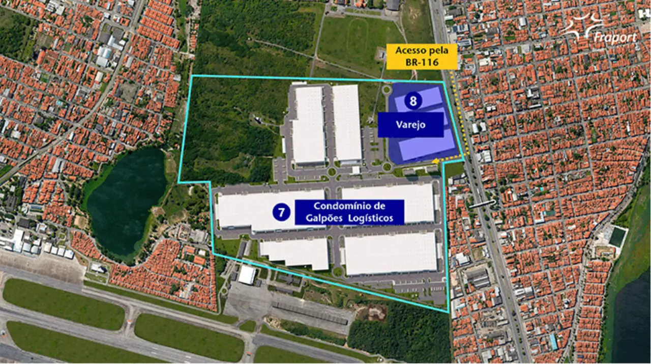 “A Fraport Brasil e o desenvolvedor firmaram contrato para o desenvolvimento de um centro logístico no complexo imobiliário do Aeroporto de Fortaleza. A área tem acesso pela BR 116 e possui 590.000 m². No momento, o projeto está em busca dos licenciamentos necessários e está sendo desenvolvido o cronograma das obras”, informou a Fraport.