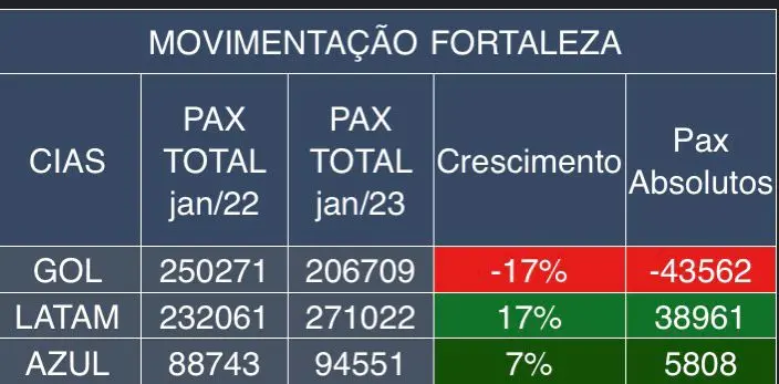 O pior ainda estaria por vir, quando a partir de abril deste ano, a quantidade de operações da companhia em Fortaleza cairia brutalmente, para uma média de 11 decolagens por dia, aproximadamente, 50% de 2022.
