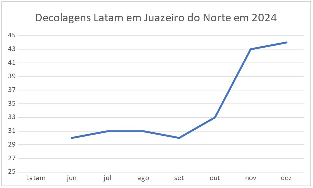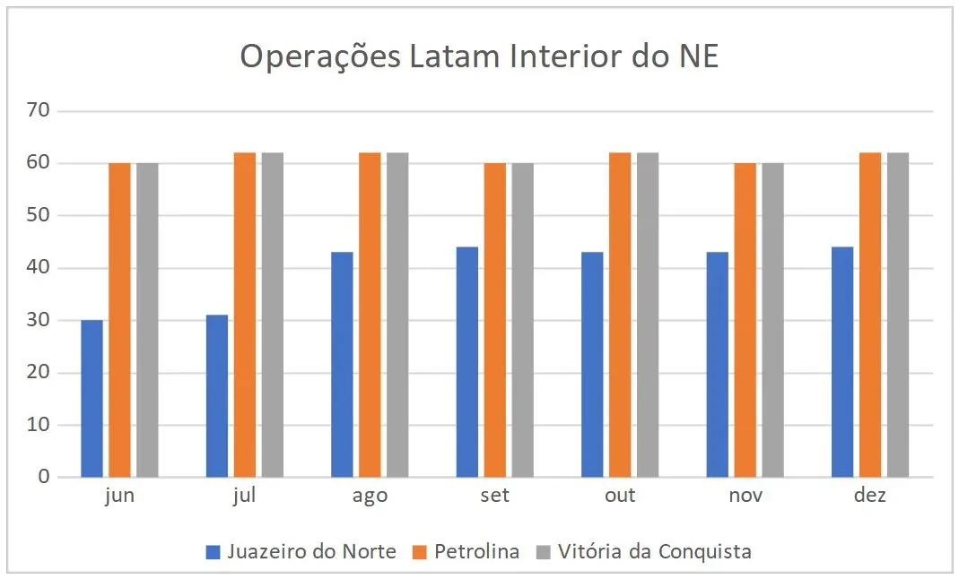 Segundo dados da Anac (Agência Nacional de Aviação Civil), a quantidade se mantém até, pelo menos, dezembro de 2024. O incremento da Latam em Juazeiro é importante e traz a praça para nível de operação Latam mais próximo que cidades do interior do Nordeste como Petrolina-PE e Vitória da Conquista-BA: todas possuirão até duas partidas por dia para o aeroporto de Guarulhos.