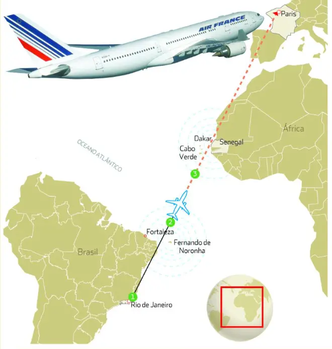 Segundo o relatório do voo, o AF 447 atravessou regiões com extensas e potentes camadas de nuvens, a chamada ZCIT (Zona de Convergência Intertropical - sistema atmosférico que afeta bastante a pluviometria do Ceará.