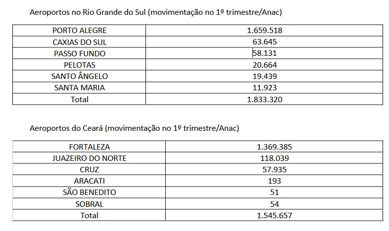 O Ceará tem menos aeroportos contando com voos de jatos médios como o Boeing 737-800, Embraer 195 e Airbus 320 que o Rio Grande do Sul.