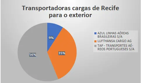 Nos aeroportos de Fortaleza e Salvador, 100% dos números de carga internacional são transportadas em aviões comerciais. Salvador possui uma rota não-regular para Miami com a Latam Cargo, mas não refletiu na movimentação. Recife ainda possui 35% da carga transportada por avião cargueiro da Lufthansa Cargo, que leva para a Europa produção de frutas de todo o Nordeste.