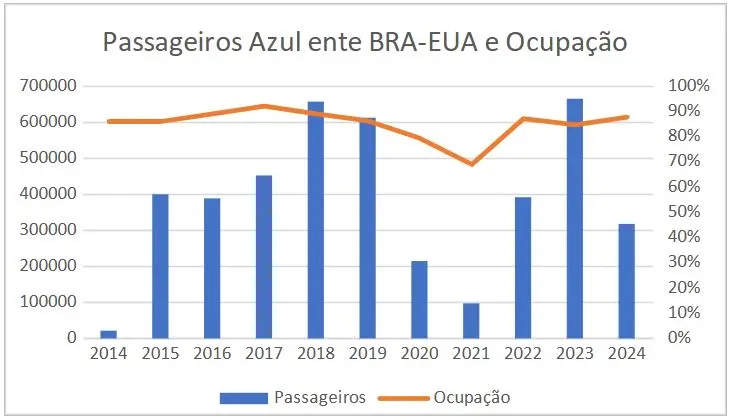Nesses 10 anos, foram mais de 4 milhões e 200 mil passageiros transportados ida e volta entre Brasil e Flórida a taxa de ocupação média de 85% de ocupação. Se descontados os anos de 2020 e 2021, degradados pela pandemia, a taxa de ocupação média é de 88%, excelente número, que mostra a grande procura pelos trechos.