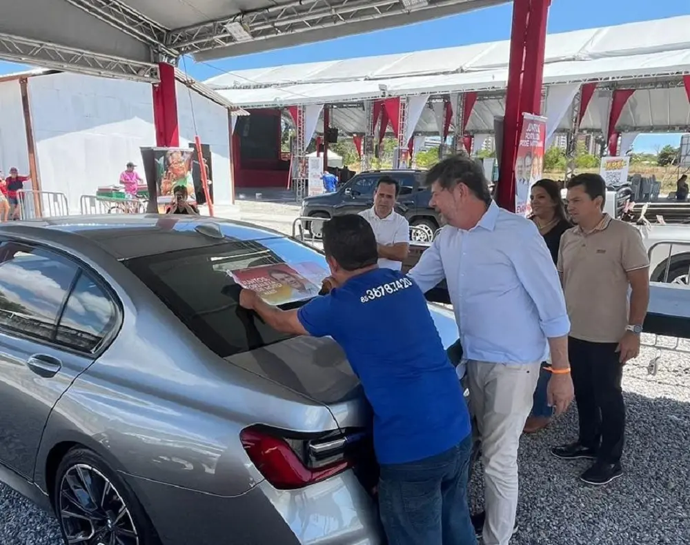 Após rumores sobre ausência, Cid Gomes vai ao comitê de Evandro e adesiva o próprio carro