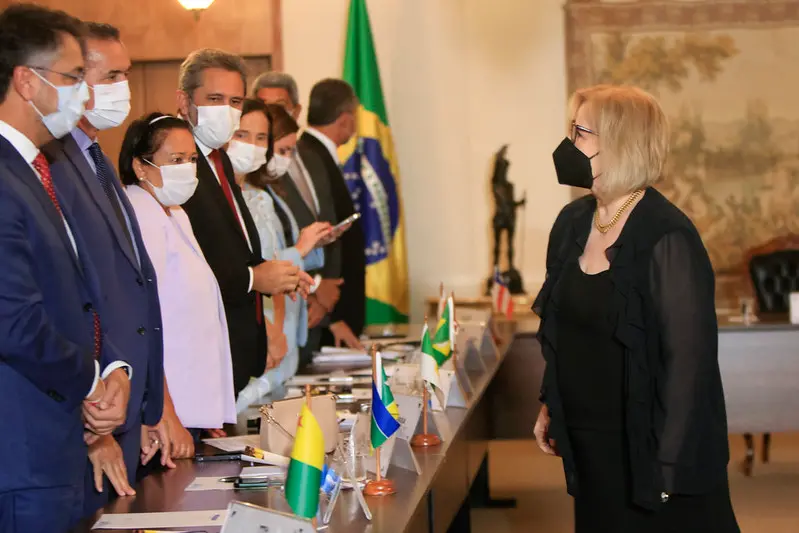 Izolda Cela participou na última segunda-feira (12) de uma audiência da presidente do Supremo com governadores sobre questões fiscais. Na ocasião, Izolda conversou com Rosa sobre o caso do Ceará em relação aos precatórios.