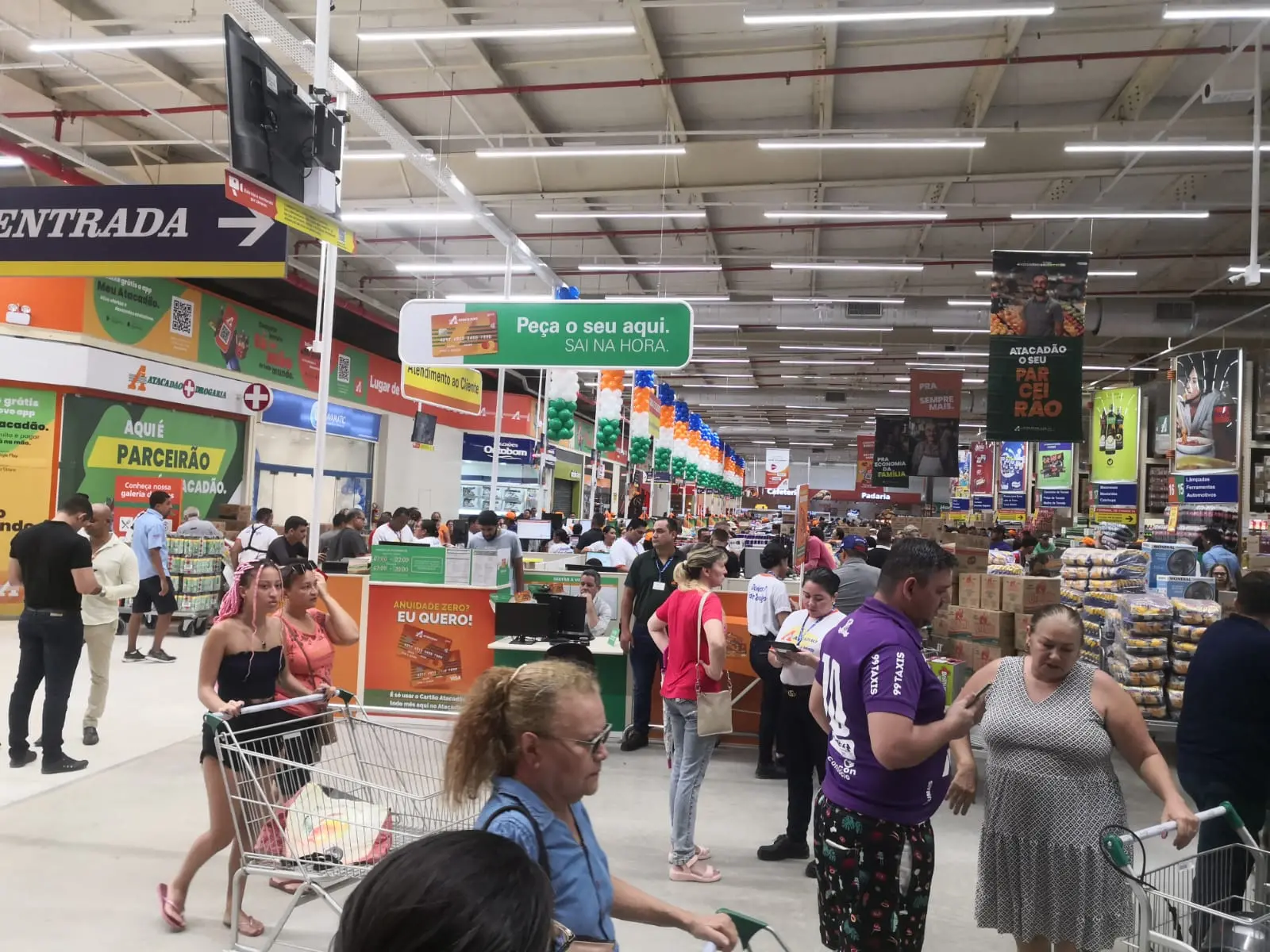 O espaço ainda oferece estacionamento com pontos de recarga para carros elétricos, caixas de autoatendimento e soluções financeiras, como o Cartão Atacadão, além de pagamento via PIX.
