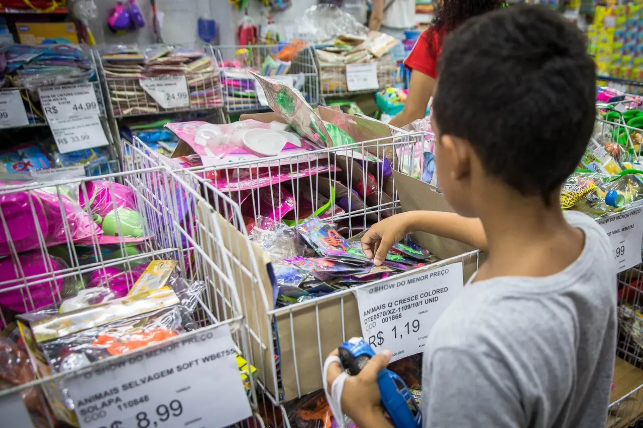 Uma criança de cerca de seis anos estica o pescoço até onde o olhar alcança, de frente para um paredão de bonecas em uma loja do Centro de Fortaleza. Enquanto parece absorta, o mundo ao redor corre em um ritmo frenético: consumidores para lá e cá parecem não ter mãos suficientes para segurar tudo o que decidiram levar a poucos dias do Dia das Crianças.