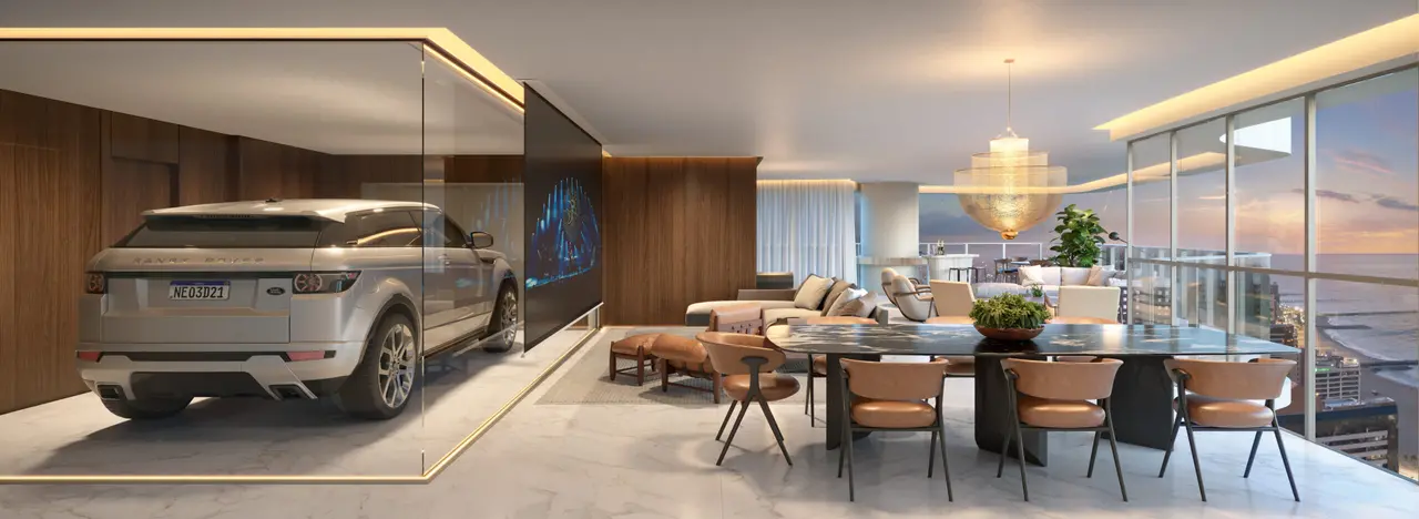 O condomínio de uma torre conta com diferenciais como tomada para carro elétrico, heiponto e skydrive, que é um elevador para carros que permite ao morador sair do veículo de frente para o apartamento. Um imóvel nesse prédio custa cerca de R$ 5,7 milhões. A previsão de entrega é 2026.