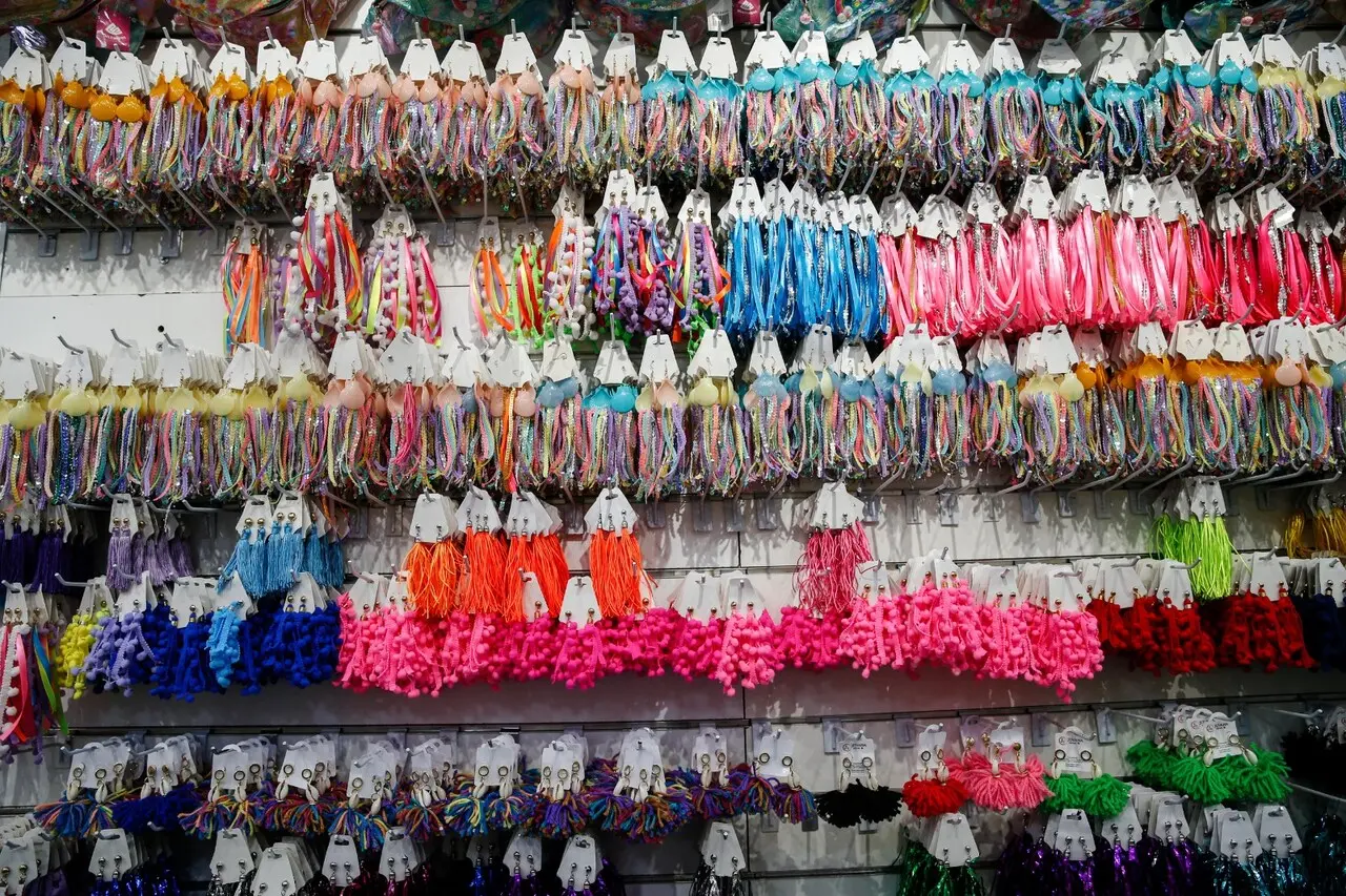 A loja em que é possível encontrar os acessórios é da empresária Sol Lima, que reformula a mercadoria para a chegada do Carnaval todos os anos. Nessa época, cerca de 50% dos produtos são relacionados ao período festivo. Em uma de suas cinco lojas, na Governador Sampaio, rua lateral ao Buraco da Gia, o movimento era intenso no último dia de janeiro.