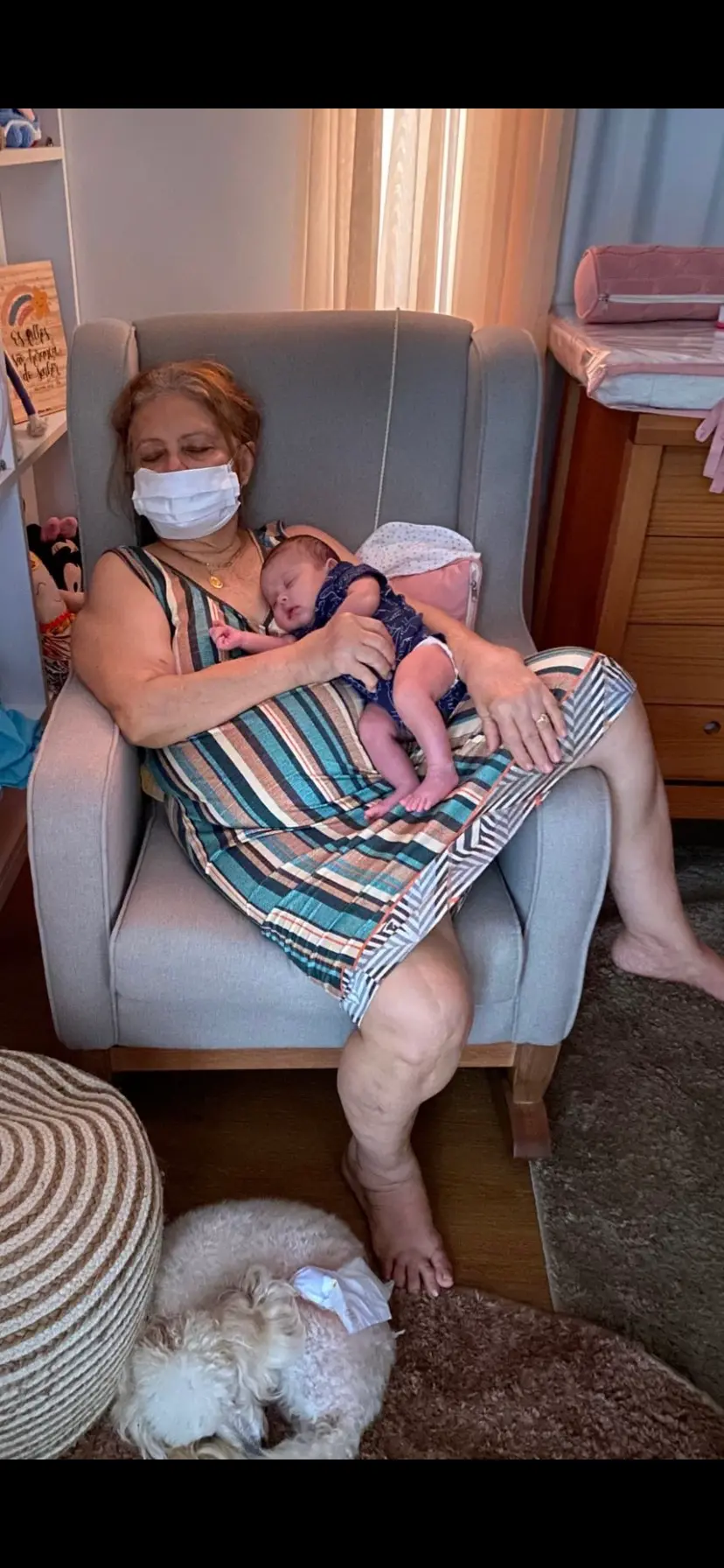 Passa por cima da idade, da dor nas pernas, das limitações e diz: quer que eu segure ela? Descanse. Estou aqui pra isso.