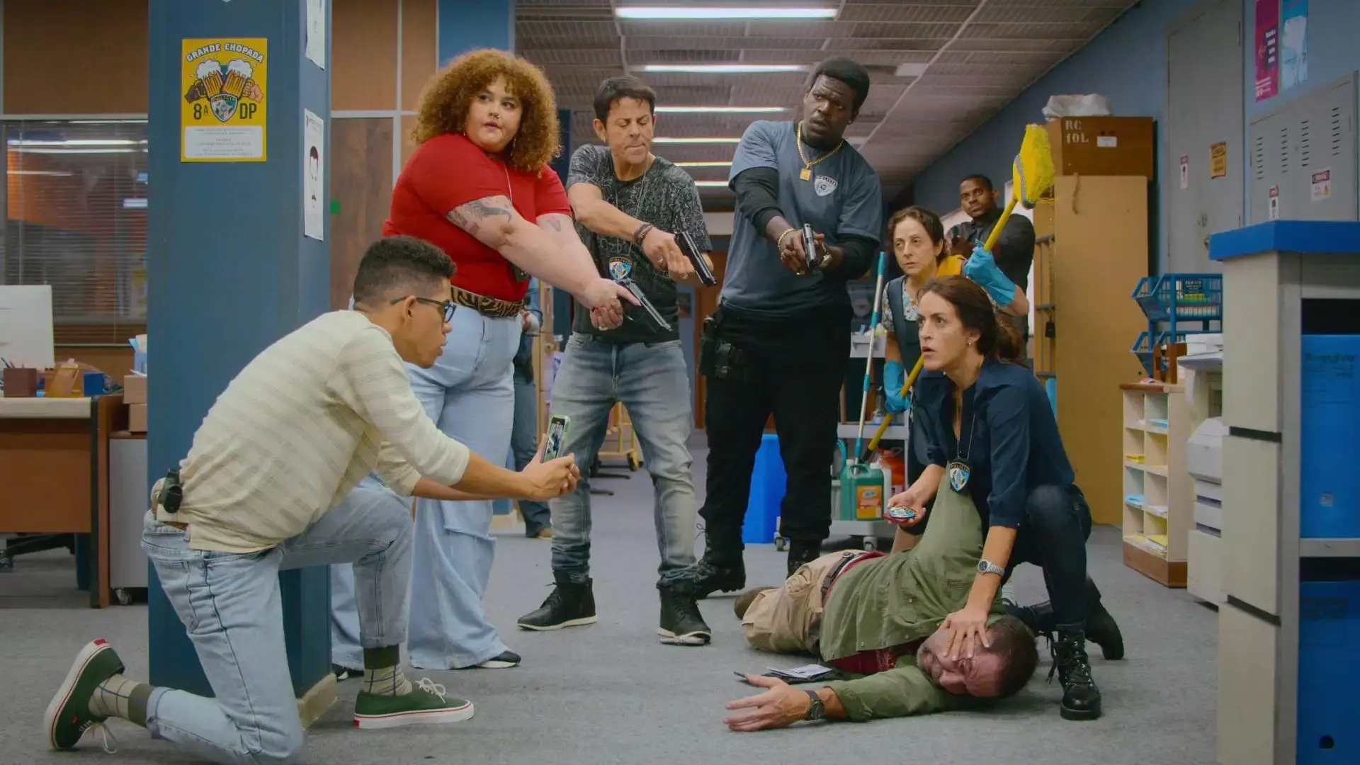 "A coisa se passa na delegacia, mas em momento algum a gente faz essa série de comédia. A nossa que é como se fala uma 'série policial', porque ela se passa num ambiente de uma delegacia. Acho que poderia ser qualquer repartição pública. A gente lida mais com a burocracia do sistema", aponta o ator e humorista.