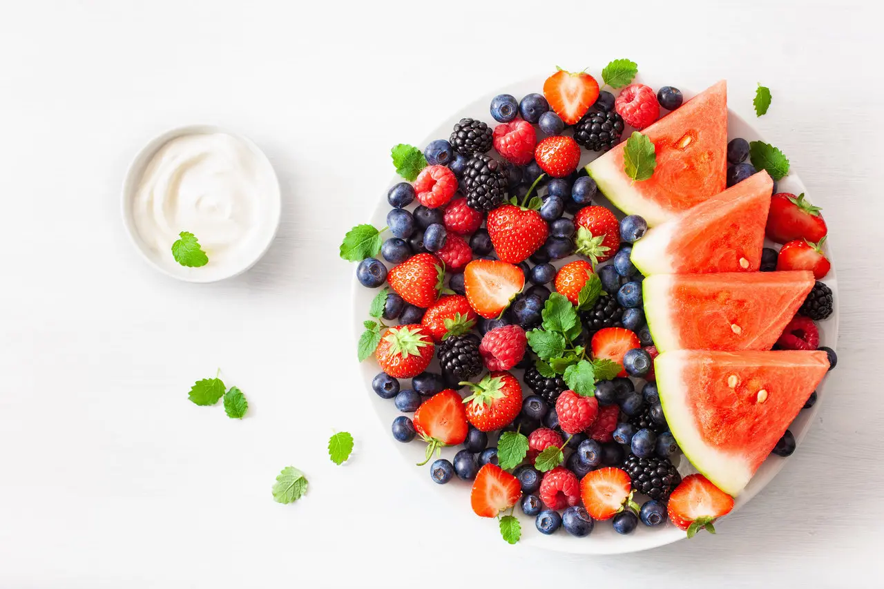 O consumo de frutas no pós-treino também é uma opção recomendada por profissionais. De acordo com a especialista, as frutas vermelhas são excelentes opções, por atuarem como antioxidantes e combatem os radicais livres. São elas: a melancia, amora, morango, açaí, cereja, dentre outras.
