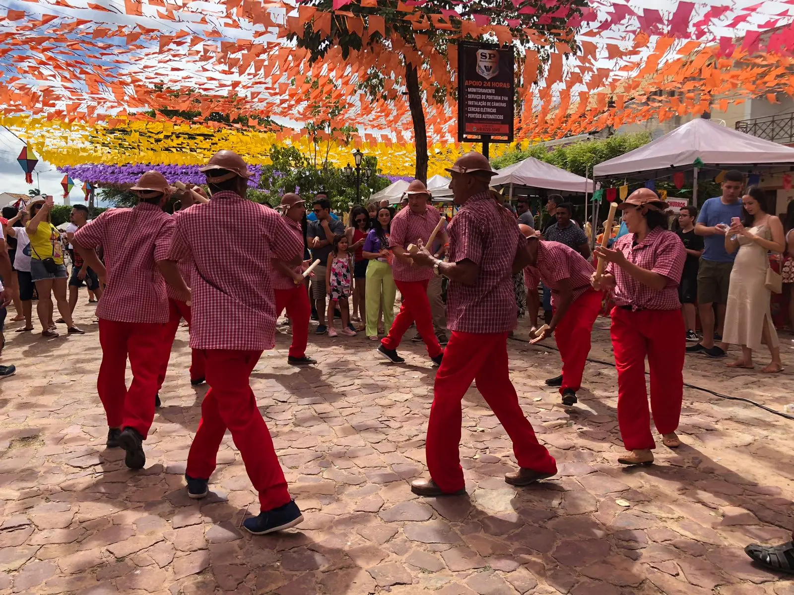 Há uma superstição de que quem toca no tronco da árvore usado como haste da bandeira será favorecido pelo santo casamenteiro. Os avós de Benjamim riram da brincadeira. Acham que o menino já exibe talento precoce para ser ator.