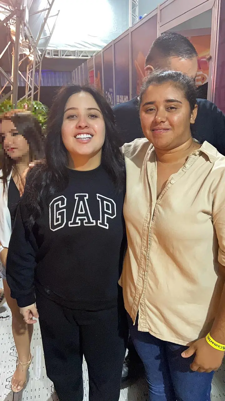 Na madrugada de sexta-feira (14), Renatha foi aos bastidores da Expocrato para abraçar e conhecer Tarcísio do Acordeon. A jovem vestia uma calça jeans, uma blusa na cor bege, tinha o cabelo preso para trás. Sorria mais do que falava.